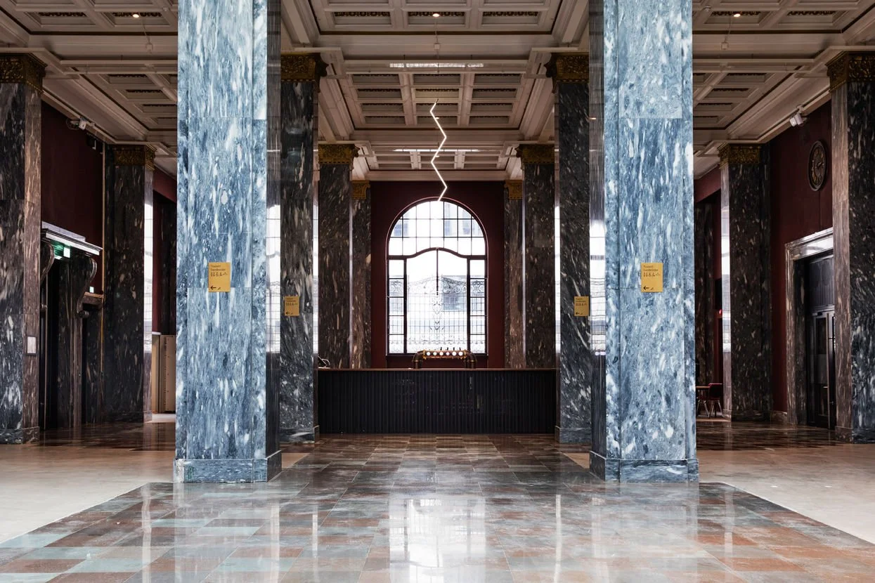 Marmorsalen er bankens gamle ekspedisjonslokale i første etasje. Her har vi behold det originale steingulvet og det imponerende marmorinteriøret med ekte marmor fra Fauske.